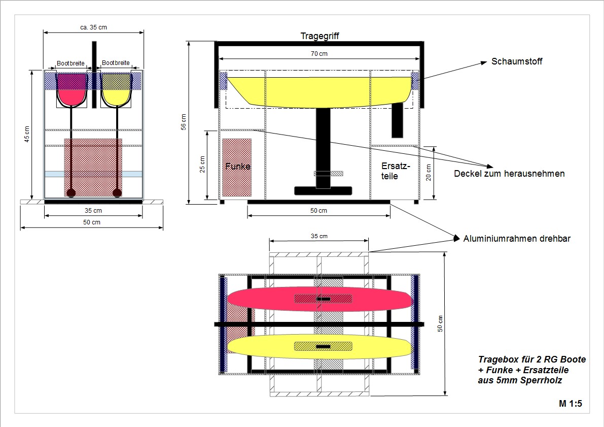 Die Idee mit dem drehbaren Rahmen unter der Box ist, das die Standfestigkeit erhöht wird und die Boote