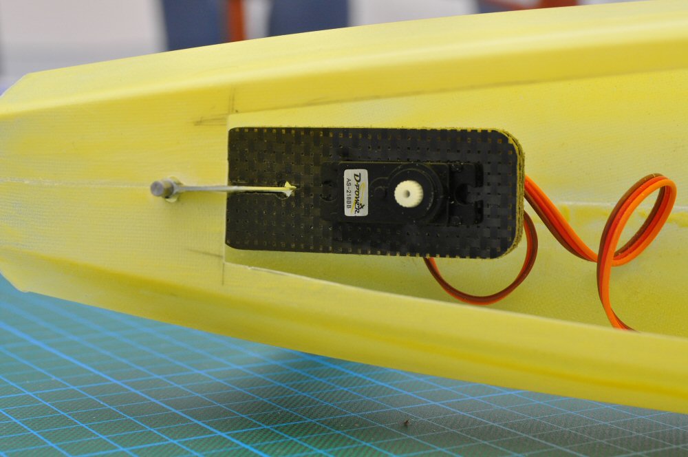 Das erste Ruder ist auch schon in Form gebracht - 0,5mm CFK Platte mit 2x 1,5mm Sperrholz, geschliffen mit einem Bandschleifer 80mm. Kommt auf ca. 20g.