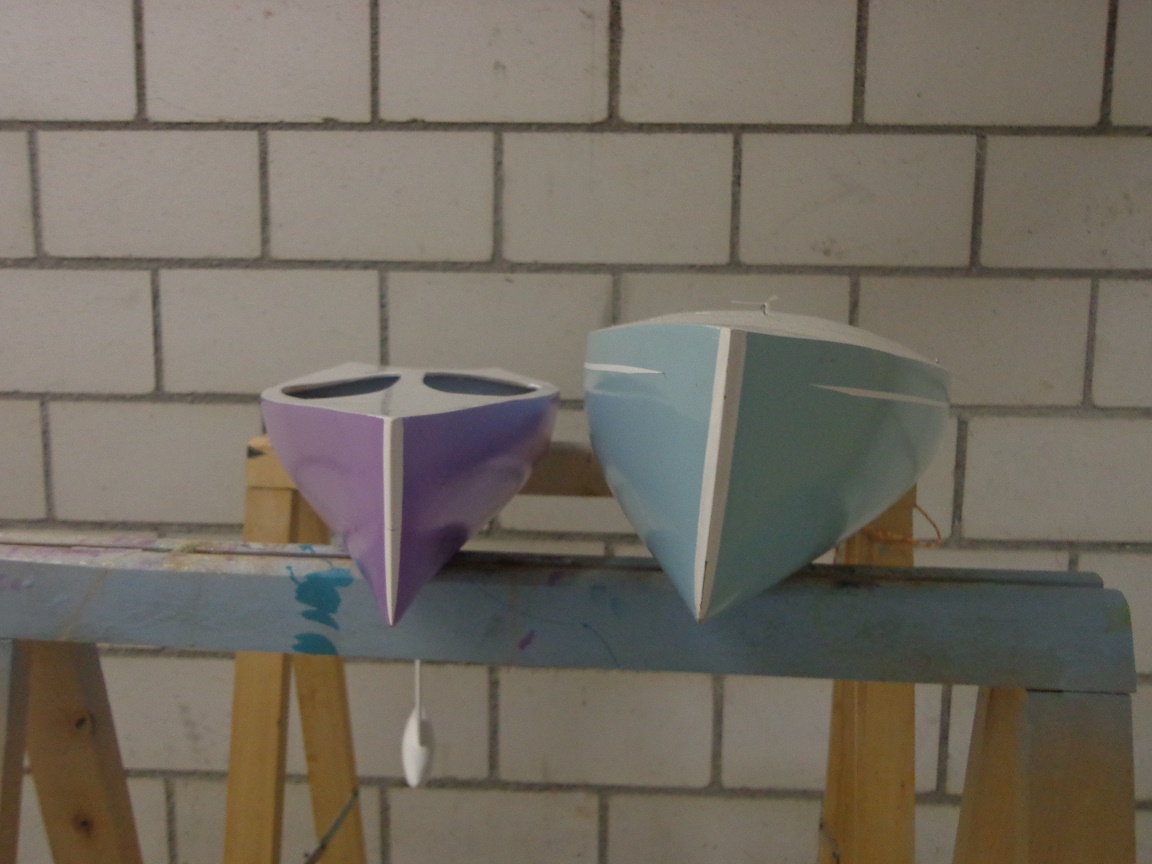 Danke für die Blumen! Es ist ein Eigenbau, die bisherige Entwicklung gibt es unter Pläne, Boote und Projekte unter den Titel "Rg65, fast nach Originalrissen". Denselben Plan habe ich nun etwas gedrückt und gepresst. Das heisst, Höhe und Breite nach Augenmass verringert. Die beiden Rumpfvarianten im Vergleich. Dazu der "Laminieruntergrund".
