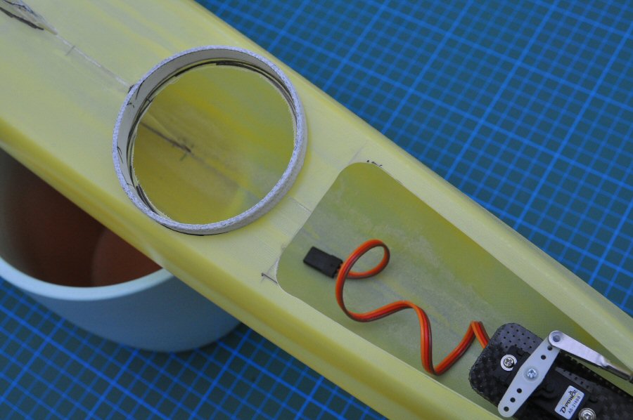 Anders als bei Rolands Entwurf habe ich mich entschieden, einen 50mm Deckel zwischen Schot und Mast einzubauen. Dadurch möchte ich den Akku möglichst dicht an den Kiel bekommen.