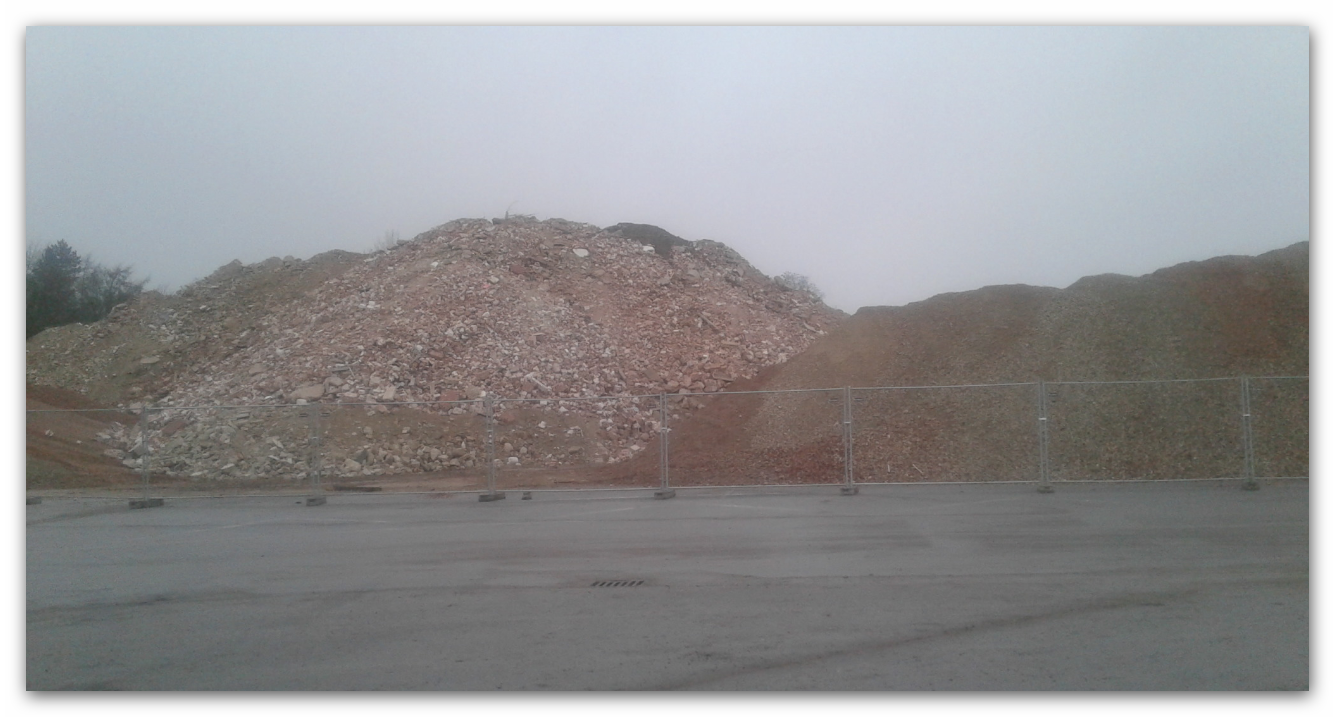 Die ganze Fläche ist mit Abraum von den alten Gebäuden, die schon abgerissen worden sind, zugekippt.