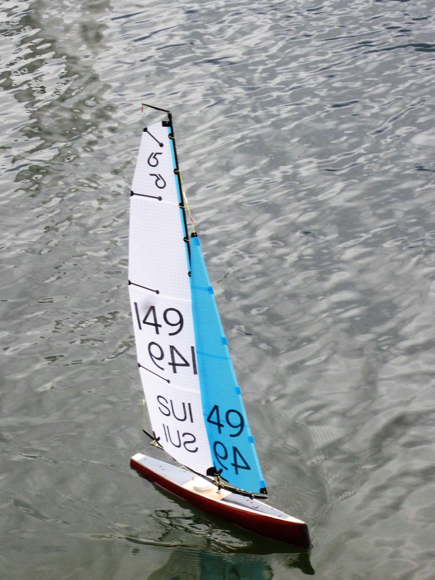 Das Boot ist nun mit Klarlack gespritzt, ist sehr schön geworden. Nun geht es noch an den Einbau der Elektronik und das Anbringen der Patches und dann kann das Boot seinem Element, dem Wasser übergeben werden. Die Jungfernfahrt ist gut verlaufen, das Boot liegt sehr schön im Wasser und springt auch bei schwachem Wind gut an.