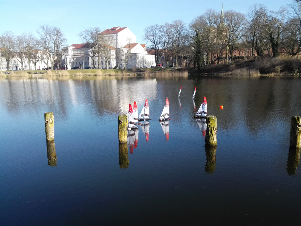 Am Ostermontag wurde auf dem Knieperteich im Bürgergarten die erste DF65 RCR Regatta gesegelt. Ausrichter war der Förderverein der Mittwochsregatta Stralsund e.V.
