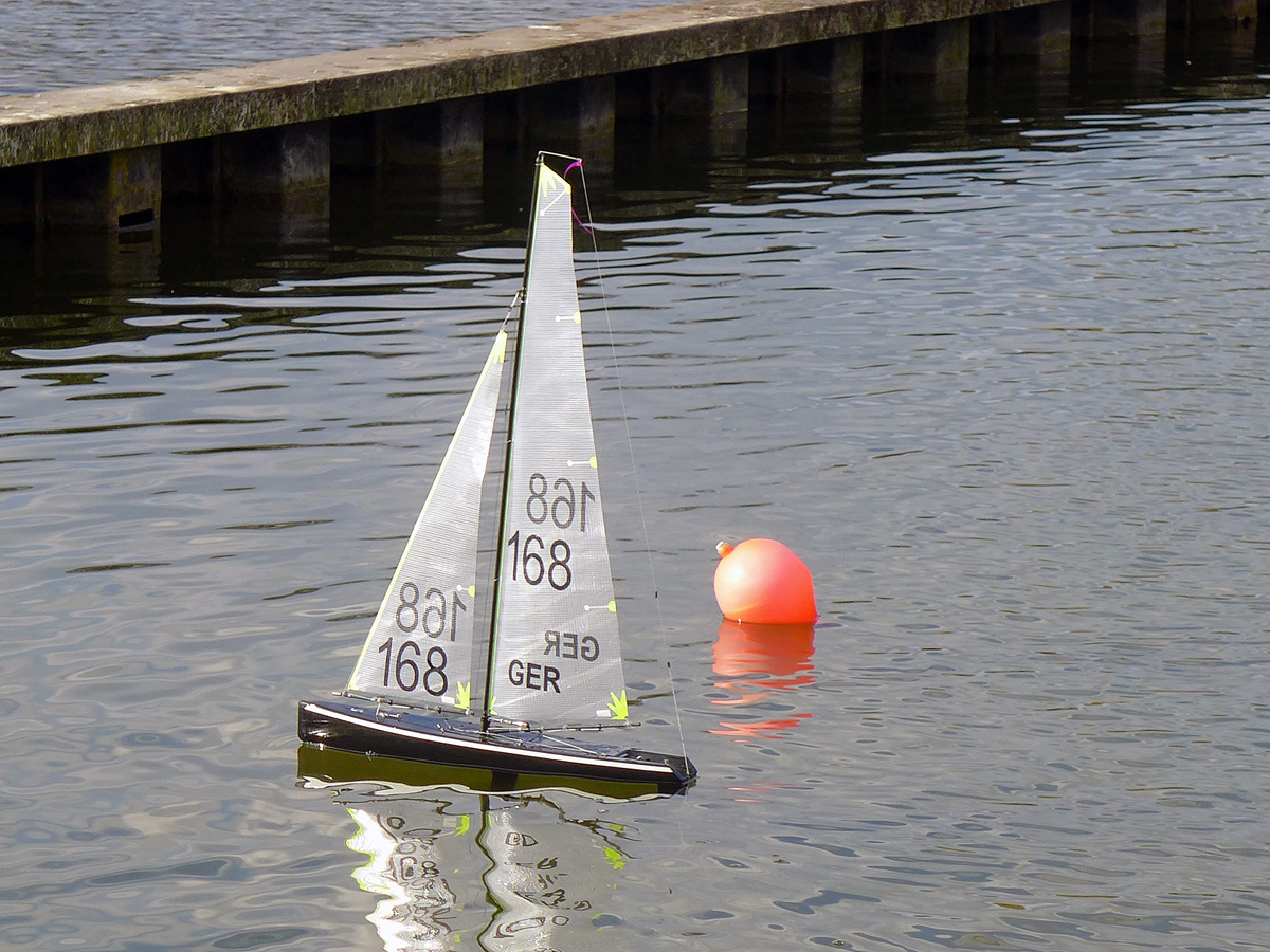 Das sieht schon arg komisch aus, ist aber für das Modellbaubecken im Hamburger Stadtpark genau das richtige. Nicht unbedingt zum anspruchsvollen Segeln aber um den vielen Zuschauern dort am WE die DF65 vorzuführen.