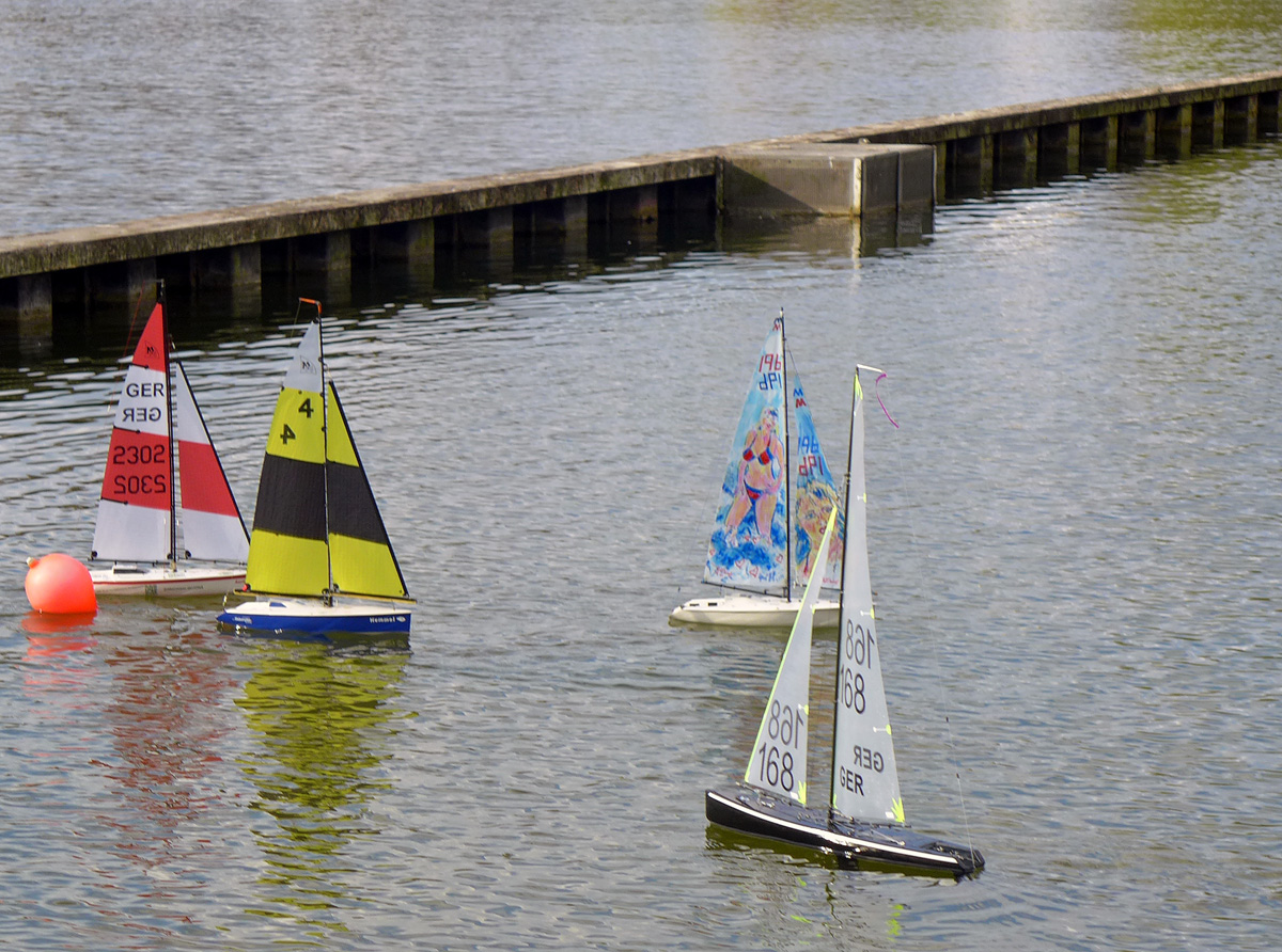 Lockeres Modellsegeln bei nur 8 Grad in der Hamburger Abendsonne