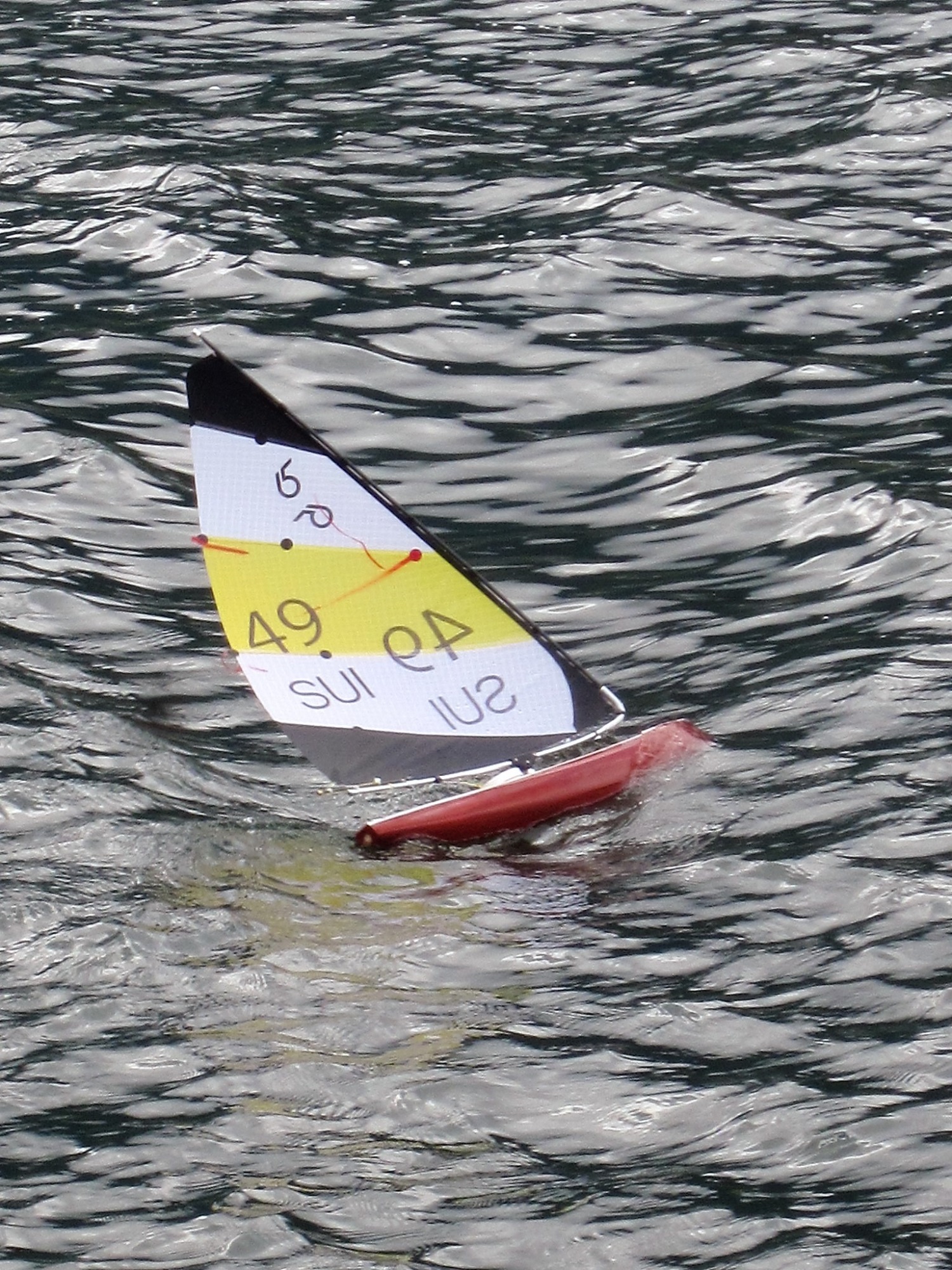 Das Boot ist nun mit Klarlack gespritzt, ist sehr schön geworden. Nun geht es noch an den Einbau der Elektronik und das Anbringen der Patches und dann kann das Boot seinem Element, dem Wasser übergeben werden. Die Jungfernfahrt ist gut verlaufen, das Boot liegt sehr schön im Wasser und springt auch bei schwachem Wind gut an.