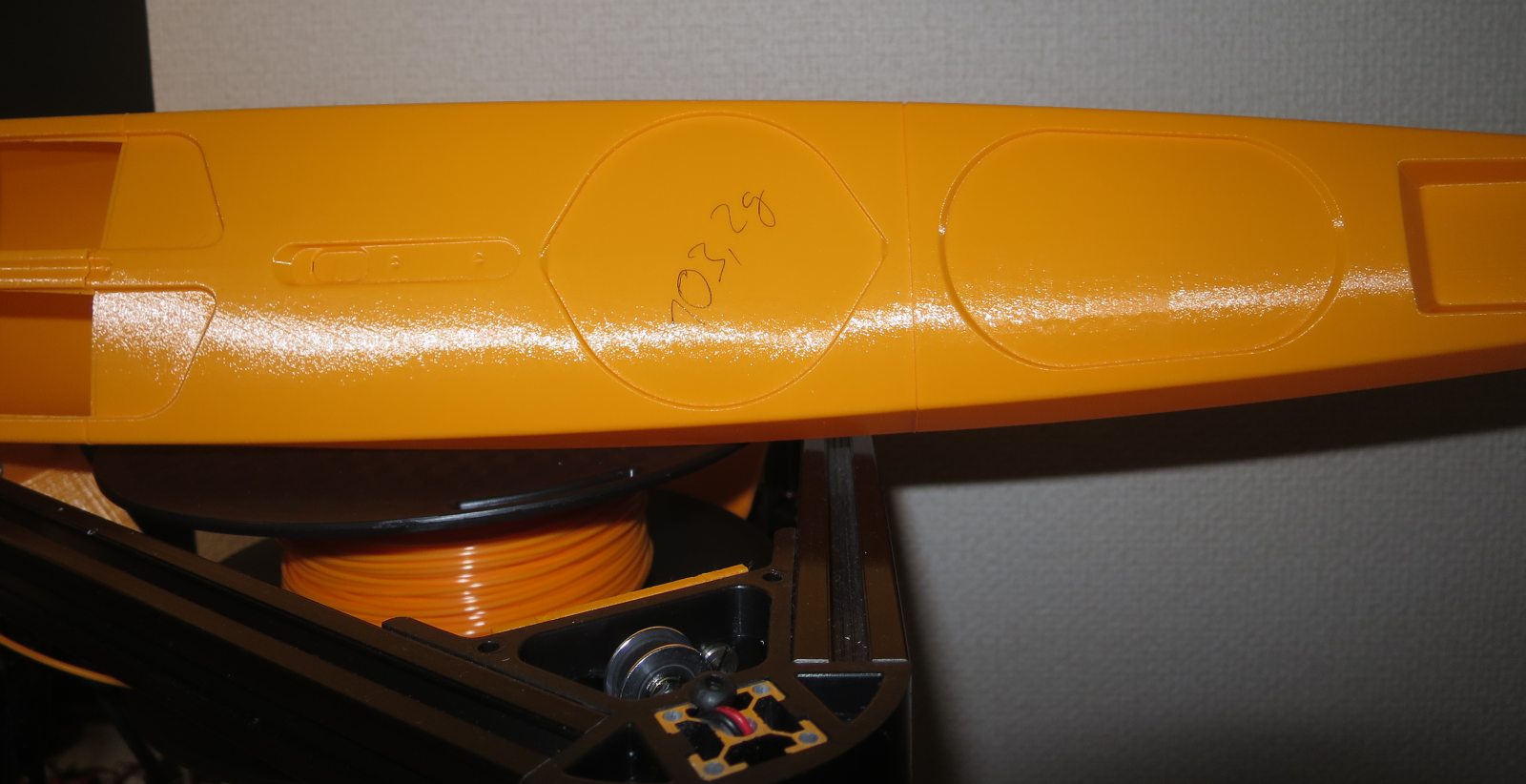 Interessanterweise bewirkt die bessere Druckqualität auch merklich steifere Teile! Obwohl die gemessene Wandstärke bei derselben Einstellung von 0.6 auf 0.55 zurückgegangen ist (eine Folge der größeren Rauhigkeit vorher, der Meßschieber misst eben über die Spitzen), ist der neue Rumpf viel steifer.