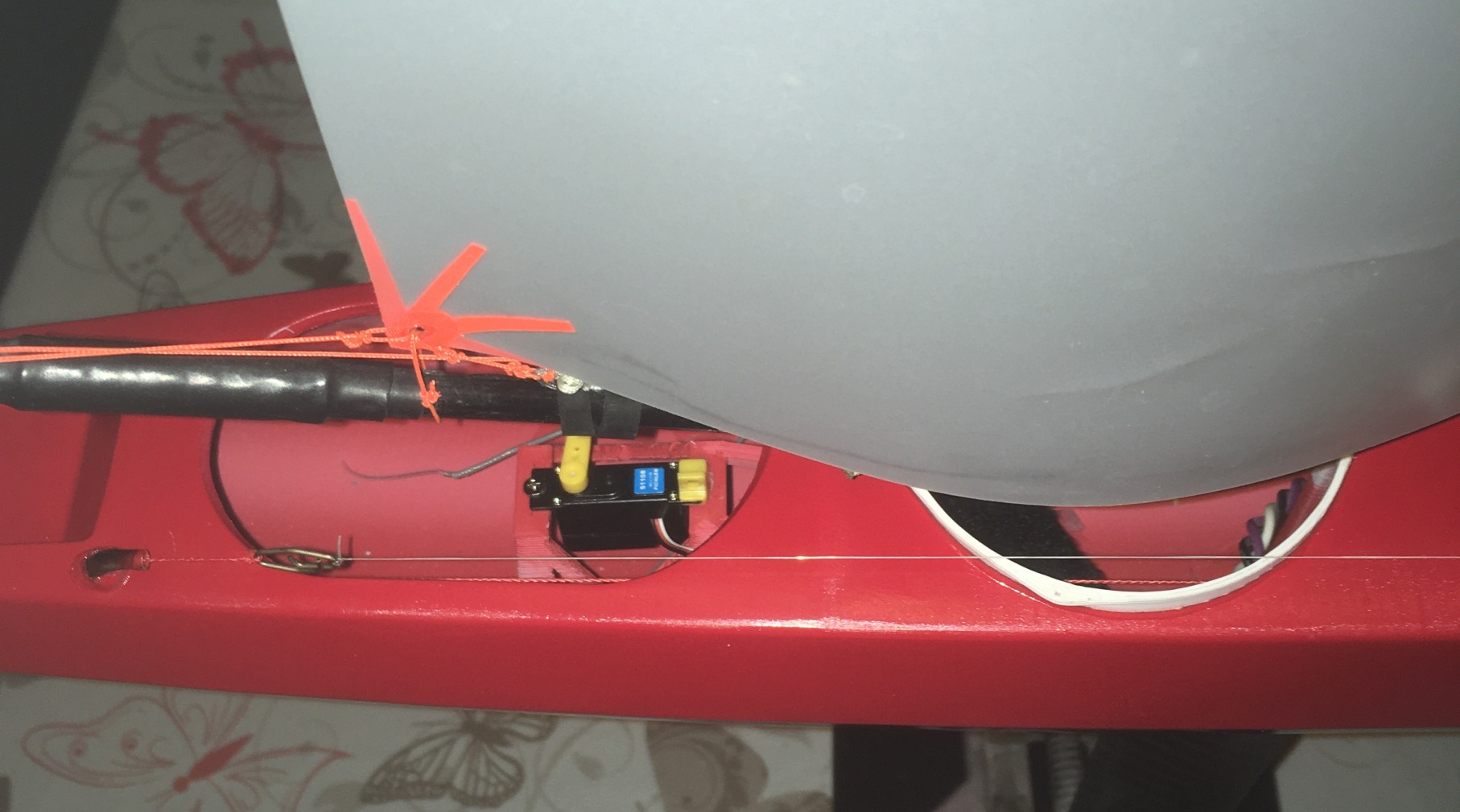 Fahrfertig wird sie um die 1070-1080g auf die Waage bringen. Im Moment fehlt noch die Ruderanlenkung, die knapp 17g für den Akku, Patches und Deckel.