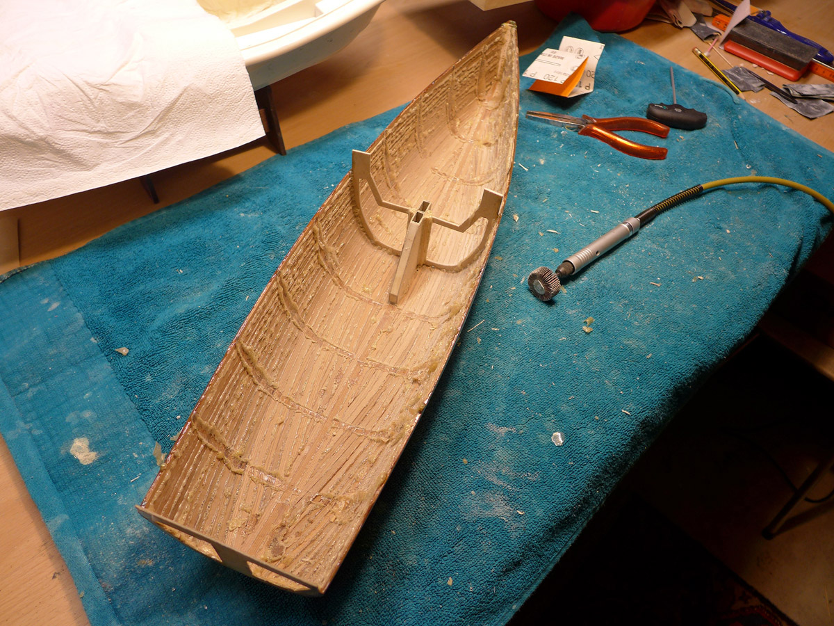 Ja Marcus, das ist immer nur ein halbes Schnapsglas an Eposeal pro Auftrag und dann kommt noch der Schliff. Ich berichte natürlich was die Rumpfschale wiegt wenn sie von der Helling runter ist.