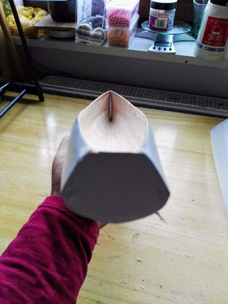 Beim Holzrumpf stehen als nächstes die Einbauten an. Eine Anfrage bei M-Blades läuft und Ballast von Manfred ist unterwegs.