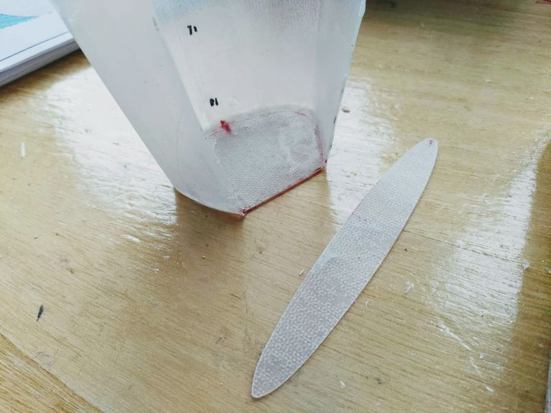 Jetzt habe ich also zwei Rümpfe zur Verfügung, werde aber wie geplant mit dem Holzrumpf weiter machen. Der wiegt übrigens 113 g. Das ist wohl dem 83er Glas und dem damit verbundenen dickeren Harzauftrag geschuldet. Dafür ist der Rumpf vermutlich robuster und somit bin ich durchaus zufrieden mit meinem ersten Werk.