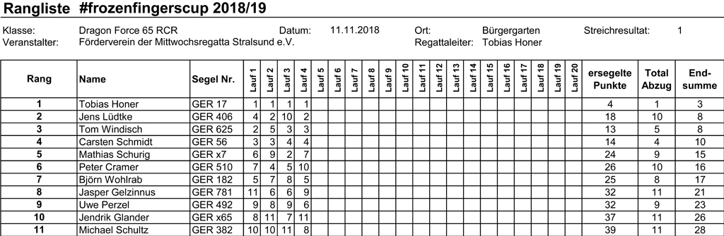 Ergebnisse auf der Facebookseite #frozenfingerscup und dem RG65 Forum.