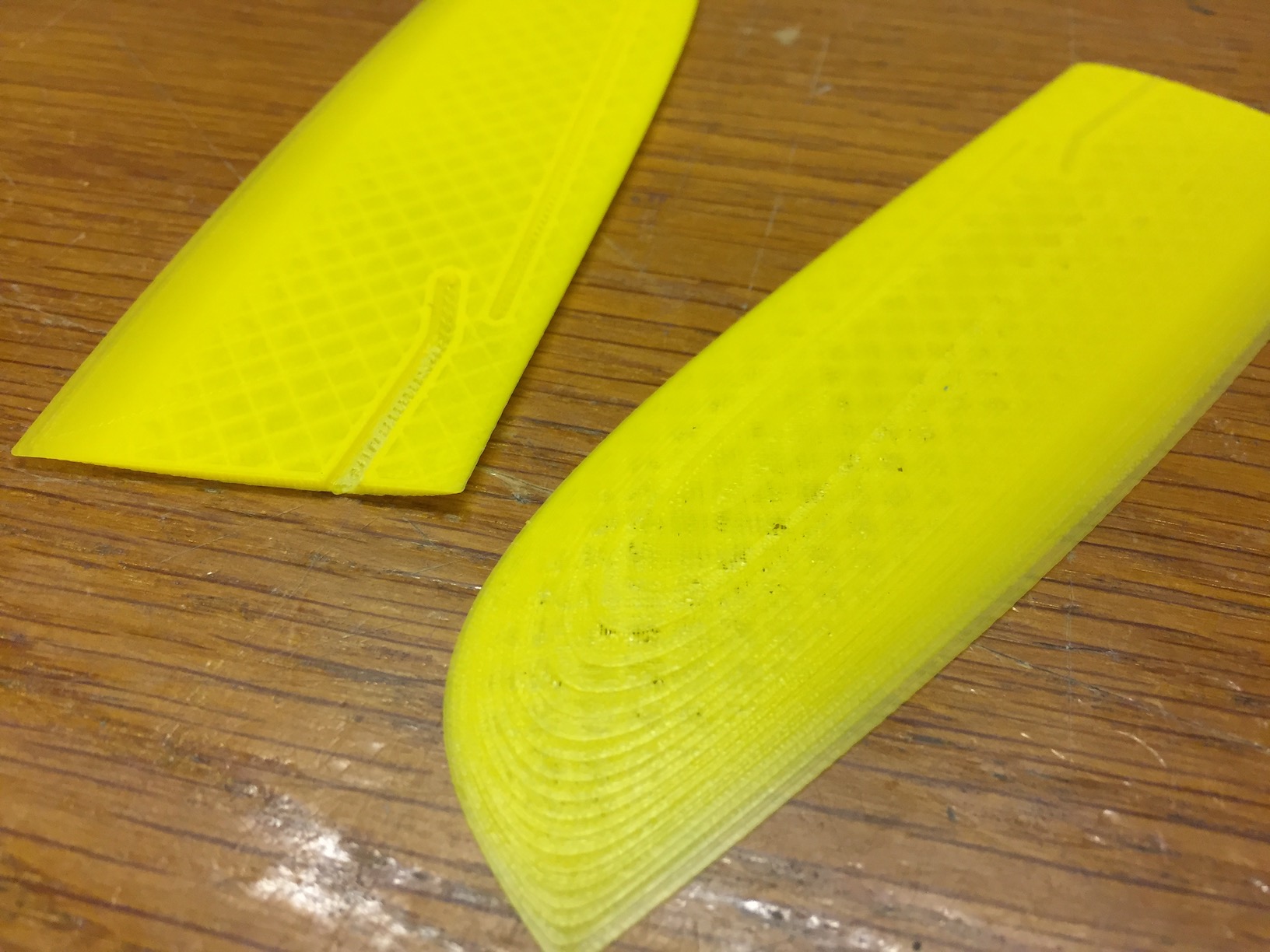 Also ich bin mit den beiden liegend gedruckten Ruderhälften eigentlich sehr zufrieden. Natürlich muss man etwas schleifen, spachteln & lackieren aber das wird richtig gut und eine scharfe Endleiste erhält man so auch.