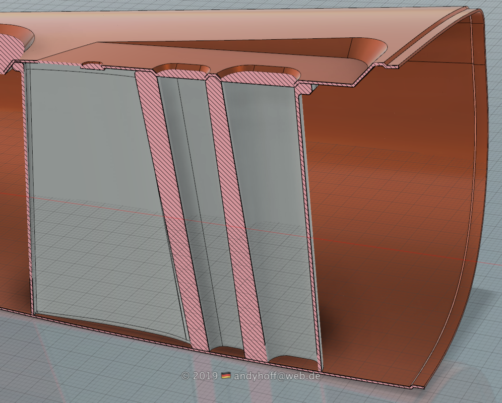 Ich verzichte mittlerweile auf Hohlmodelle (auch wenns klasse aussieht...). Wenn ich die Innenkontur der Rumpfschale für irgendwas brauche, erstelle ich eine offset surface der Außenkontur mit z.B. -0.6 mm Abstand. Daran rechnet der net so lang :geek: