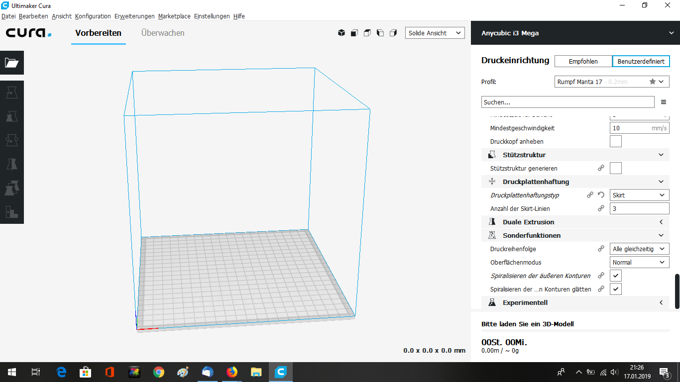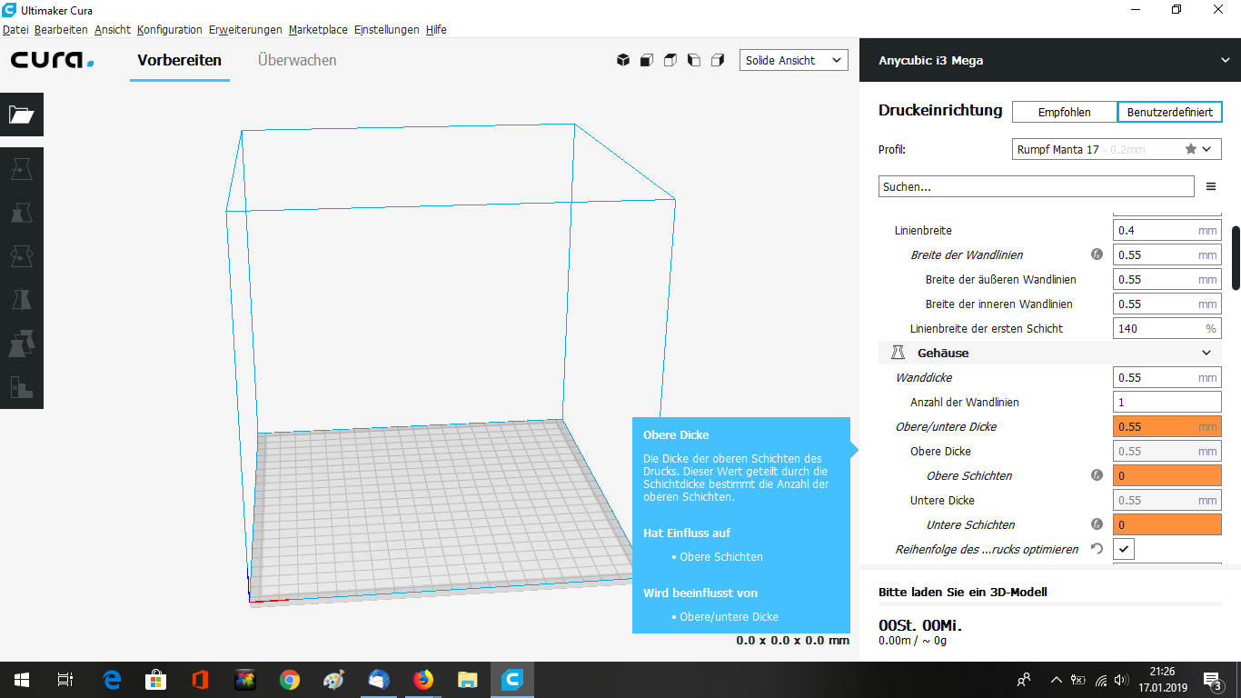 Gedruckt wird auf dem Anycube I3 Mega. Mit dem Programm Cura wurden die 3D Daten einer RG65 Manta verarbeitet und gedruckt. Leider ist beim ersten Testdruck etwas schief gegangen und ich verstehe noch nicht was. Anbei meine Teile. Diese sind rundherum geschlossen. Habe mal versucht die ersten Tele aufzusägen und passend zu feilen. Ist das ein fehlerhafte Einstellung beim Cura, oder müssen die Teile so aussehen?