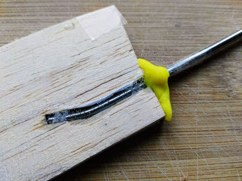 Das Ruder ist eine Sandwich-Konstruktion auf der Basis einer .stl-Datei, die Andy hier mal zur Verfügung stellte. Das Sandwich besteht aus einer Mittellage 83er Glas, zwei Lagen Balsa 2 mm und einer Außenlage 49er Glas. Die Vorgehensweise war zwar einfach, erforderte aber äußerste Sorgfalt: