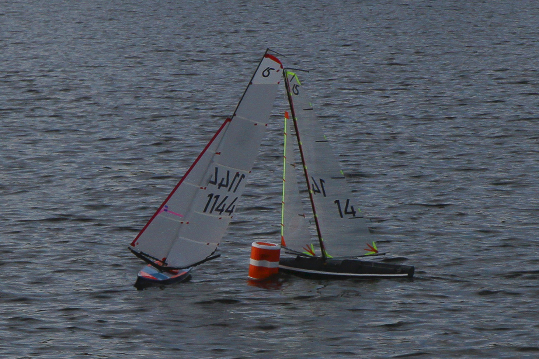 Momentan sind wir fünf Boote (3 RG65, 2 DF65) und alles Neu-/Quereinsteiger aus dem Windsurfen. Wir versuchen ein paar Bojen mit kurzer Kreuz für ein Starttraining zu legen.