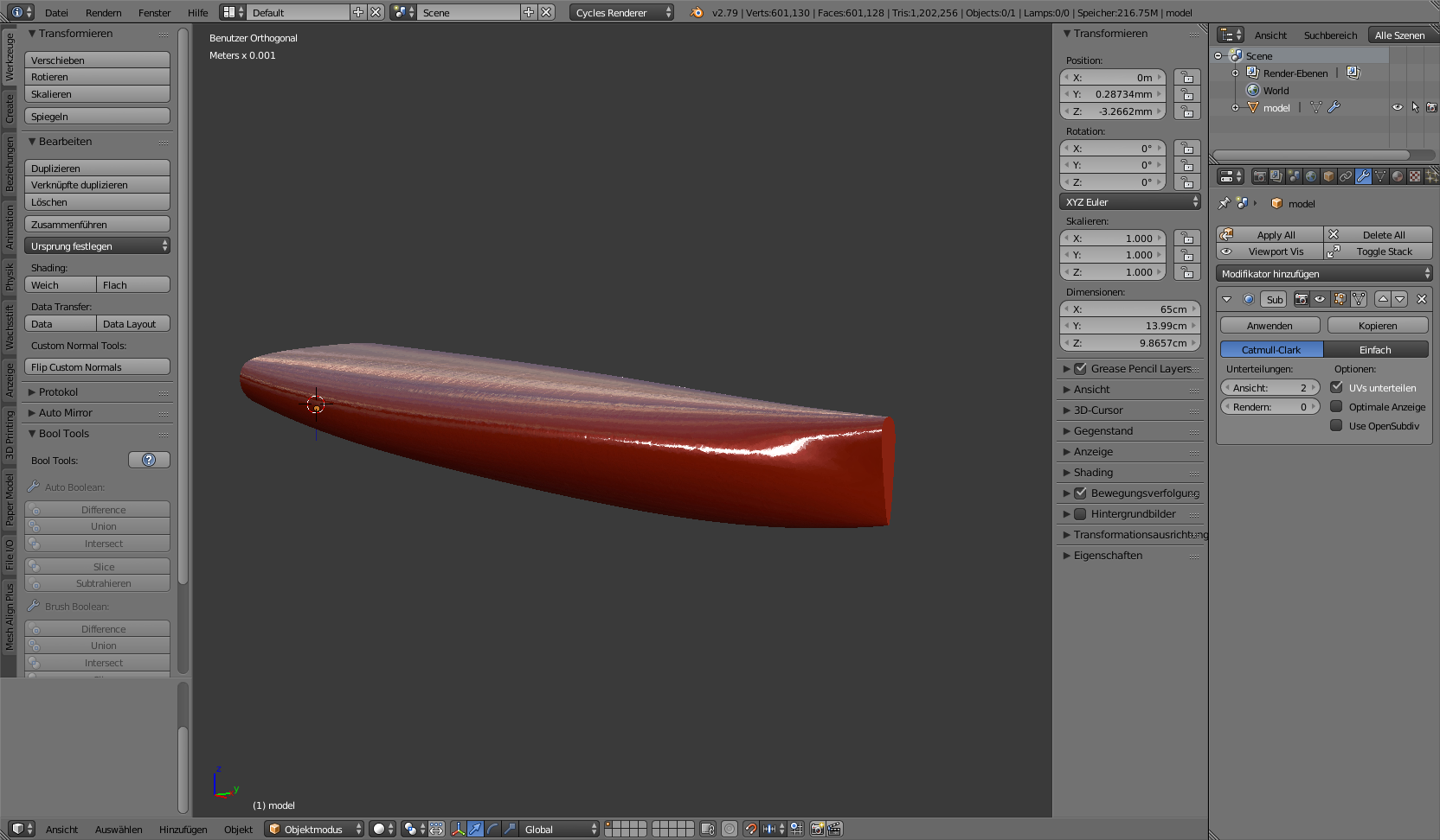 Nun habe ich die Boote in mein Blenderprogramm Importiert. Das geht Problemlos.
