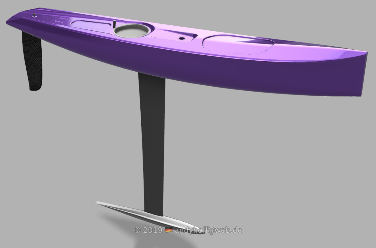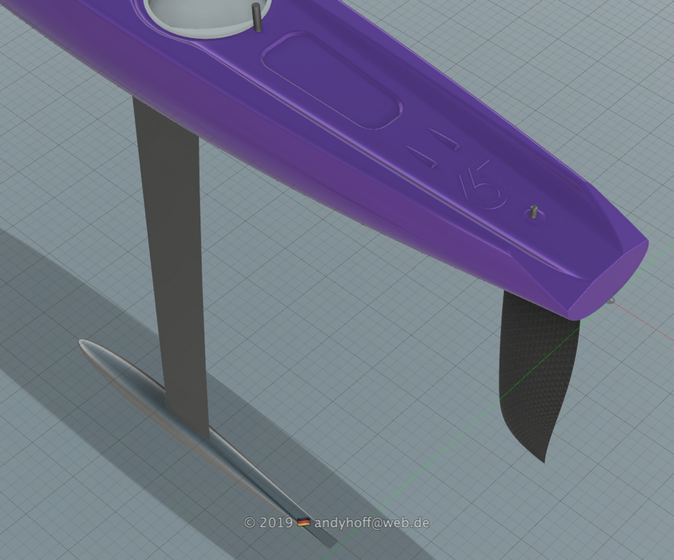 das schaut alles vie zu pummelig aus. Gestreckte Linien sind Trumpf. Man bemüht sich den Stirnwiderstand gering zu halten. Profil sollte etwa 8% dicke haben. Profillänge unterm Rumpf etwa 55mm und am Blei unten um die 40mm würde ich vorschlagen.