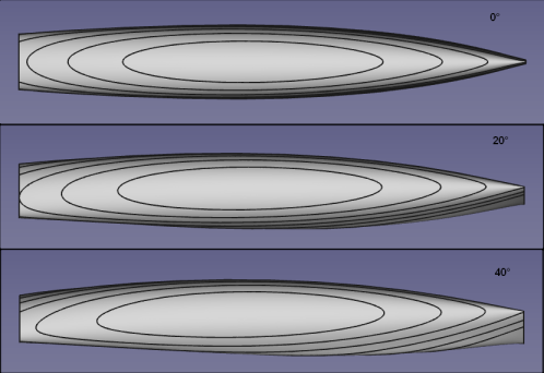 Nochmal mit Linienrissen bei Krängung 0°, 20°, 40° gespielt.