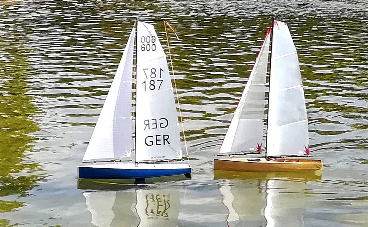 Erwin brachte sein wirklich in jeder Hinsicht perfekt gebautes Gfk Boot mit und wir konnten im Modellbecken zusammen mit einigen DF65 segeln..