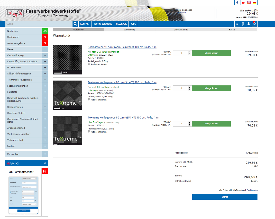 https://shop1.r-g.de/list/Faserverstaer ... r--Carbon-Für eine RG brauch man 0.5 m wenn gut zuschneidet, wenn man gleich eine längere Rolle kauft kann man noch besser zuschneiden und kriegt noch mehr Rümpfe raus. So landet man bei Carbon bei Kosten fürs Gewebe sagen mal um 50 Eur.