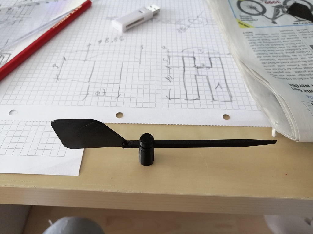 Jetzt gibt es ja massiv Zeit die mit basteln, düfteln etc. vertrieben werden kann. Ich habe mal einen ganz einfachen Windanzeiger, (OK, musste lernen in der Fachsprache ein Verklicker) für die DF65 steckbar auf A & A+ Rigg gedruckt. Der Ansatz geht in die richtige Richtung, testen muss ich ihn noch.