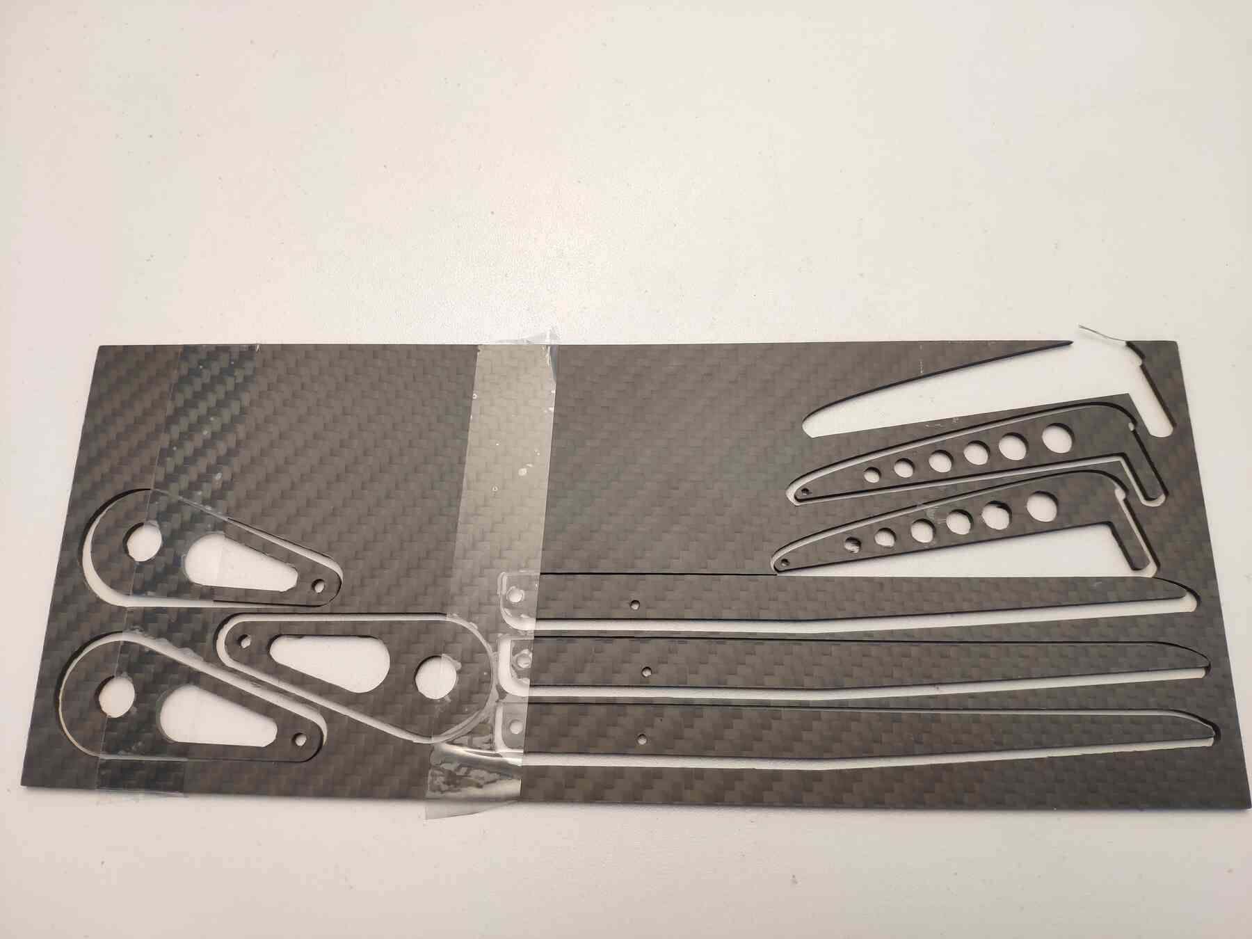 Ich habe mir mal aus einer 2mm Carbonplatte einige Teile gefräst. Sind leicht und hochfest!