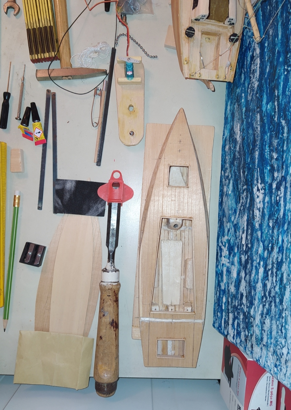 Soll irgendwann, wenn fertig im Modellbootbecken mit anderen diversen Funktionsmodellen, gemütlich durch die Miniwellen, segeln,(treiben).