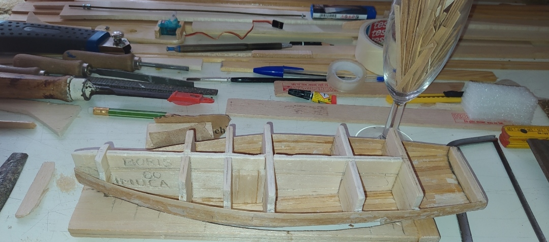 Soll irgendwann, wenn fertig im Modellbootbecken mit anderen diversen Funktionsmodellen, gemütlich durch die Miniwellen, segeln,(treiben).