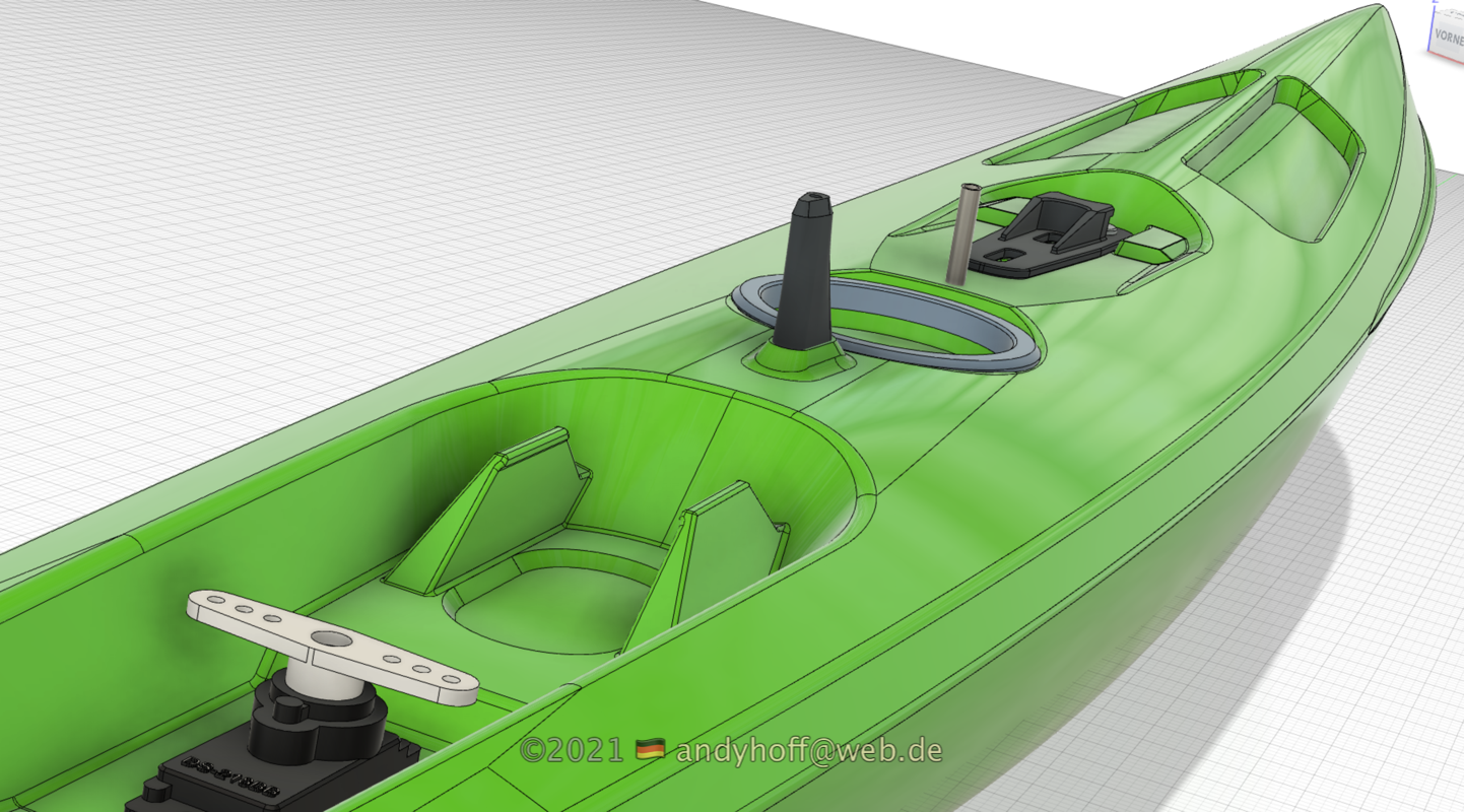 Achim gefiel das Projekt und er hatte sich zu dem Zeitpunkt schon intensiv in FreeCAD eingearbeitet. Und so entstand der Gedanke das ganze komplett in FC umzusetzen. Achim hat dabei mit dem nacktem Rumpf (so wie FreeShip ihn ausspuckt) angefangen und wirklich alles in FC neu aufgebaut.
