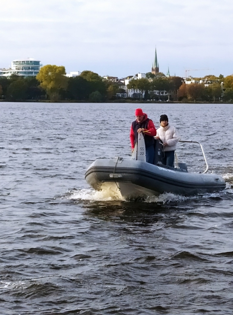 Mit Blick zur City ? Ja, mit Blick auf der Regattakonkurrenz.