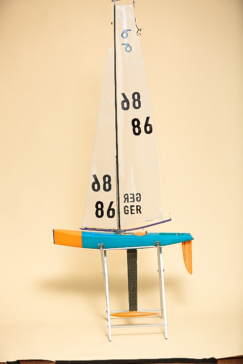 Mit zum Boot gehört ein A-Rigg mit 50mü Mylar Segeln. Die Segel wurden auf eine CNC gefrästen Schildkröte geklebt. Schildkröte und Segelprofilierung hab ich nach folgenden Daten erstellt: http://www.stirling.saradioyachting.org ... vature.htm
