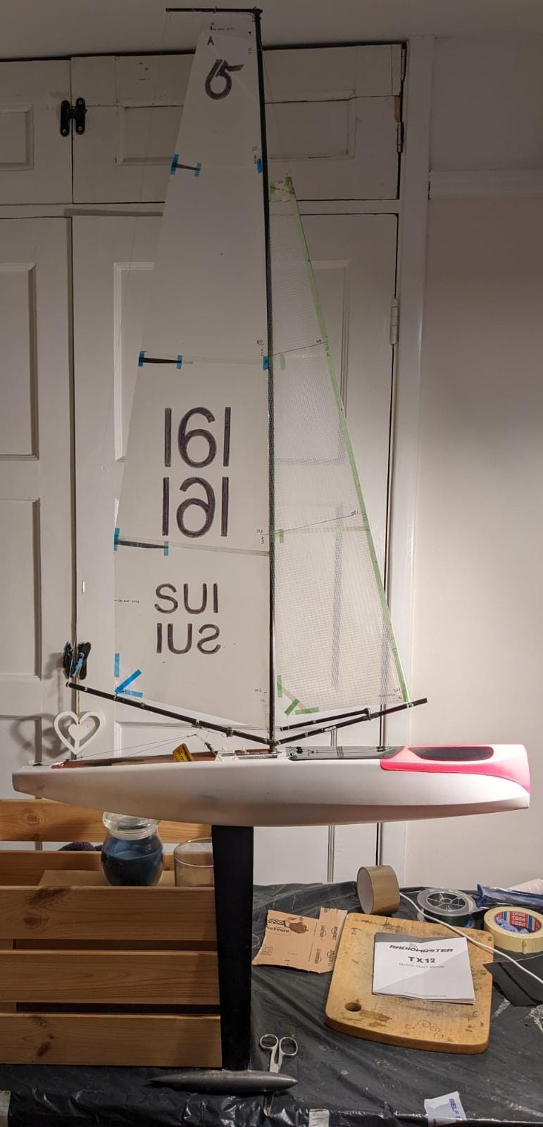 - Mein Kielgewicht war 650g an einem 33cm langen Kiel. Mein Kielgewicht ist damit niedriger als bei den Unos und der Electronica. Beide haben Kielgewichte um die 700g. Meine Kielfinne ist im Vergleich zu den kommerziellen Finnen einiges wabbeliger. Ich denke, dass ich am ersten Tag wo der Wind recht Druck hatte, durch das leichtere Kielgewicht und den wabbeligen Kiel benachteiligt war. Da muss ich mein Material unbedingt verbessern, was auch schon lange in Planung ist.