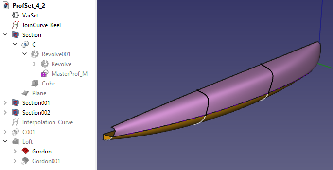 Mit JoinCurves und InterpolationCurves lässt sich eine Gordon Überwasser-Rumpfstruktur erzeugen.