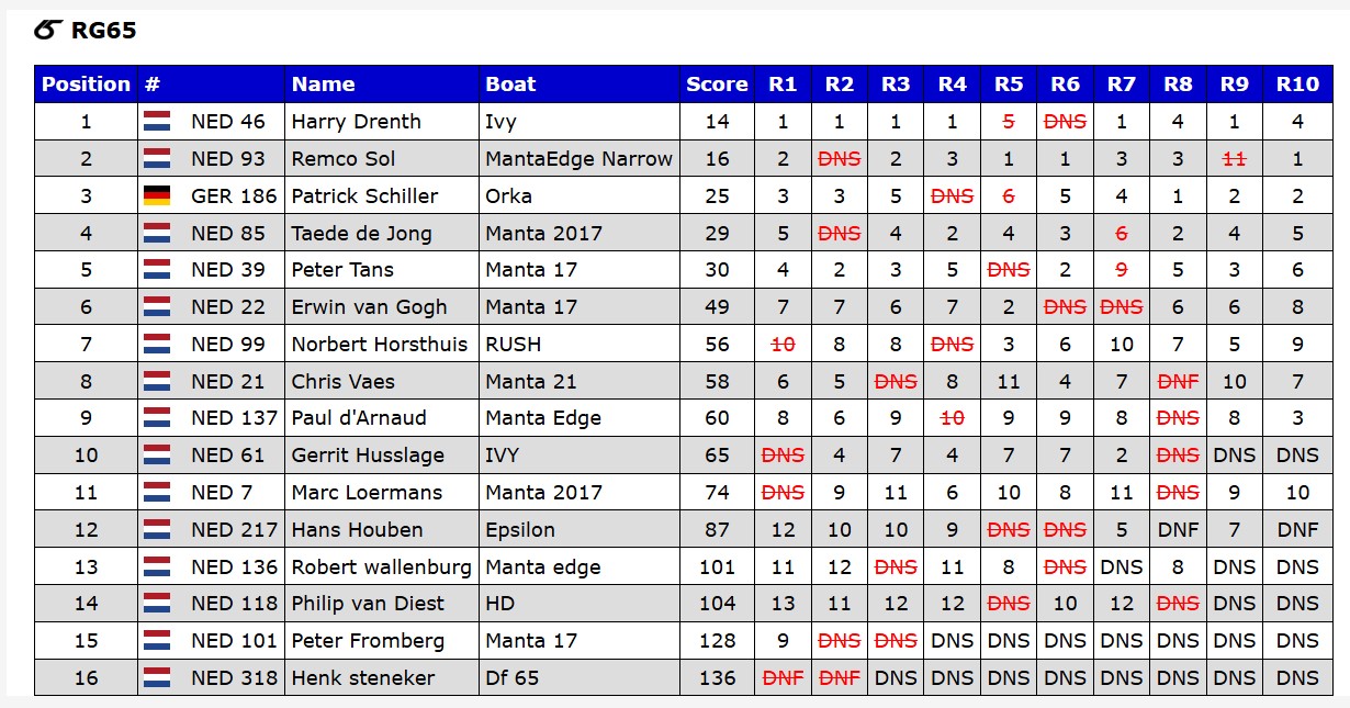Nachfolgend die Ergebnisse, ab dem 7. Lauf war ich mit dem Una Rigg unterwegs.