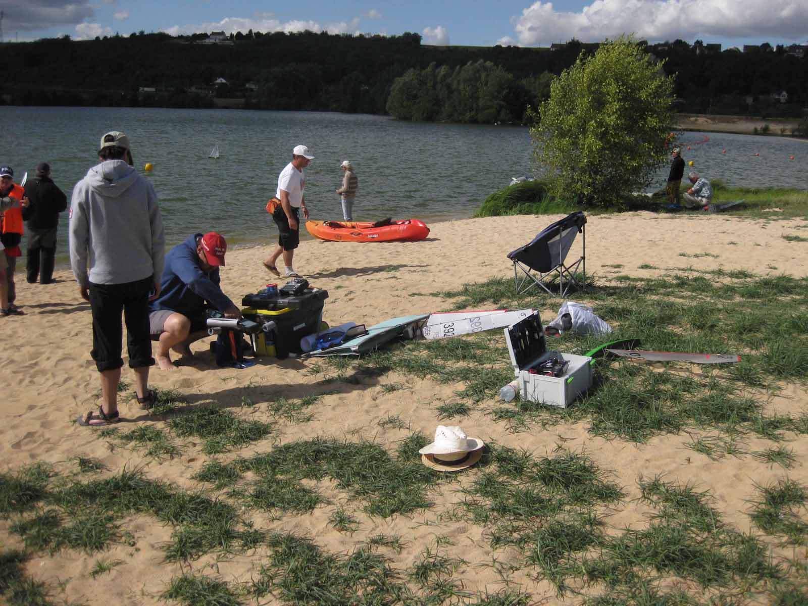 Am Mittwoch war es dann soweit die Regatta beginnt. Zunächst noch ganz gemütlich wurden die Boote und Kiele abgestempelt, gegen Mittag sollte es losgehen. Der Wind war morgens noch recht lau, so hatte sich Henning z.B. für einen leichteren Kiel entschieden. Im Laufe des Vormittags nahm der Wind dann immer weiter zu. Wir sollten auch in den nächsten Tagen feststellen dass zusätzlich zur „normalen“ Wetterlage auf jeden Fall auch die Thermik eine Rolle spielte so dass eigentlich immer mit langsam zunehmendem Wind zu rechnen war.