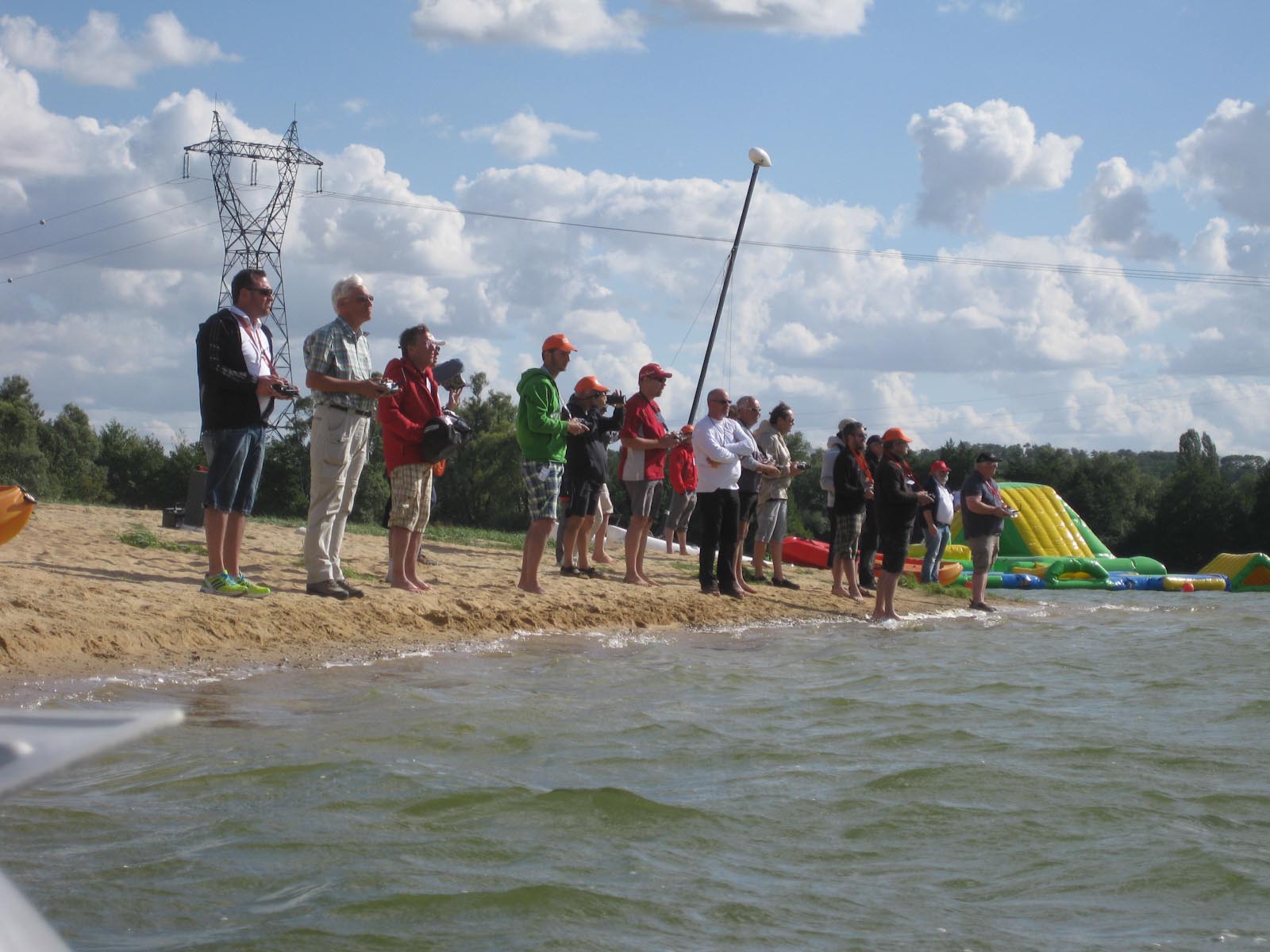 Nun aber zurück zum Rennen. Es ging wie üblich mit den Einteilungsläufen los, die drei Deutschen fanden sich in einem Lauf mit einigen der sehr starken Segler wie Augustin und John wieder. Das hat uns zunächst nicht beindruckt, wie Henning sagte hat er sich zwischendurch die Augen gerieben als Cord und ich auf Platz 1+2 lagen. Irgendwie haben wir das dann aber wieder versegelt. Für Henning und mich hats am Ende aber noch für den A Lauf gereicht, Cord ist im ersten B Lauf aber problemlos aufgestiegen. So ging es also dann zu dritt in den ersten A Lauf. Der war dann für mich leider schnell beendet, nach drei problemlosen Segeltagen entschied sich das Ruderservo genau in diesem Moment auszufallen (später stellte sich heraus das das Servo funktionierte, Ursache war ein korrodierter Kontakt im Stecker, trotz Vorbehandlung mit Wet Protect noch ein kleines Andenken vom Rostocker Salzwasser der iDM 2012). Das Ruderservo sollte uns im weiteren noch mehrfach Sorgen machen, genau kann ich es nicht mehr Rekonstruieren aber jeder von uns sollte im Laufe der nächsten Tage mindestens einmal wechseln, am Ende waren wir dabei durch die Übung so schnell das man keinen Lauf mehr vepasste…