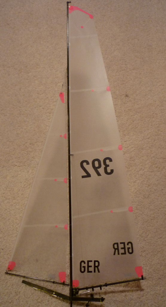 Ausserdem hab ich noch ein High Tech Swingrigg im Keller. Damit bin ich das Boot am Anfang gefahren bis ich dann eigene Riggs gebaut habe. Aufwändige Konstruktion von Arne/X Sails mit Wanten, kein Achterstag, Kugelgelagerter Großbaum für besseres Höhelaufen, Therad dazu im alten Forum bei der Viperfish. Die Segel sind wenig gebraucht, gut erhalten, eine Segelnummer habe ich Testweise rausgewischt, geht gut raus.