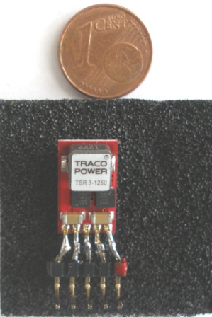 Neben dem geringen Gewicht des Konverters ist die freie Wahl der Ausgangsspannung mittels eines Trimmwiderstandes realisierbar. Diese kann auch umschaltbar z.B. mittels Steckbrücken ausgeführt werden.