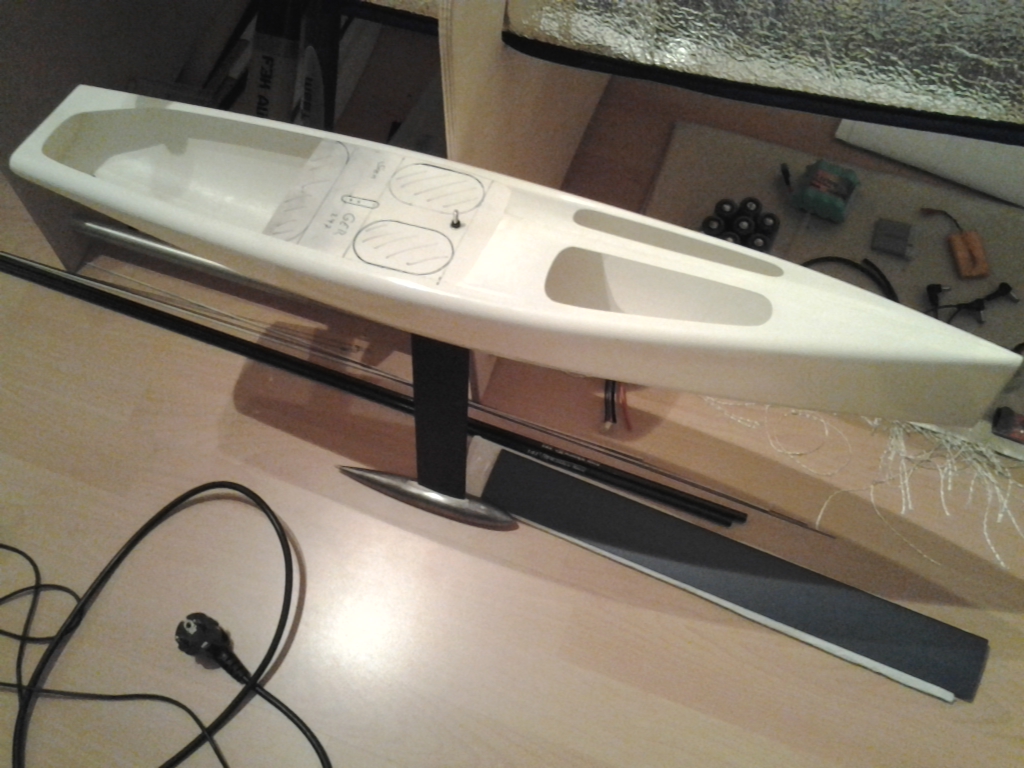 Allerdings warte ich jetzt auf Carbonmaterial für das Deck, den Servohalter und die Ruderkokker Abstützung.