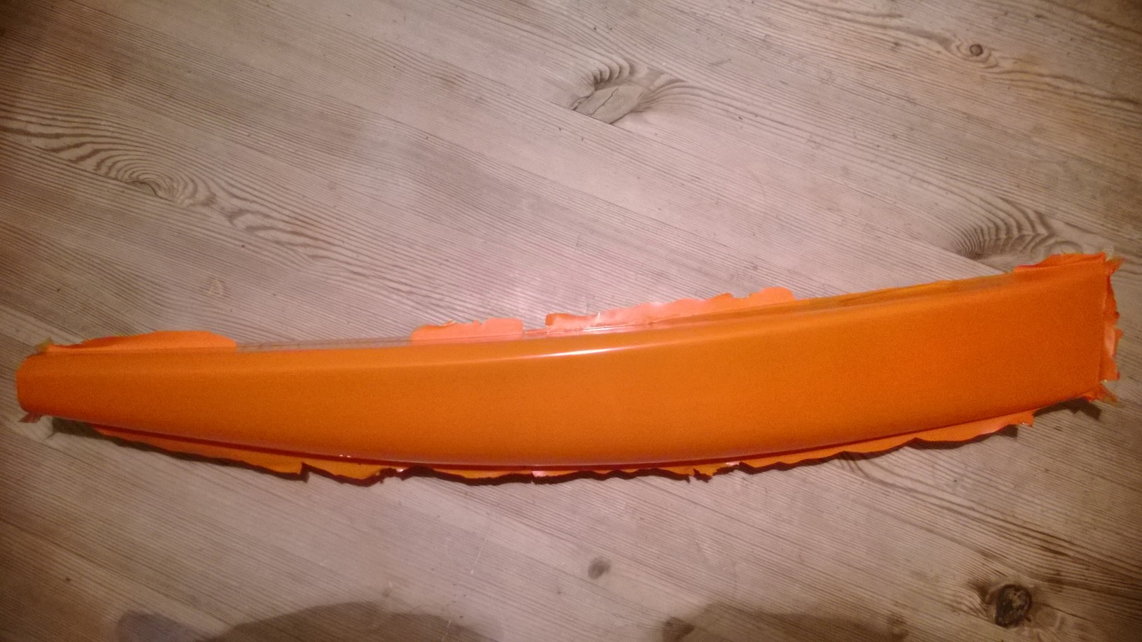 Auf dem einen Foto ist gut zu erkenne wie eine etwas zu große Öffnung für die Kielfinne passend gemacht werden kann. Die Finne wird in die Kieltasche gesteckt und im Bereich der Rumpföffnung wird Backpapier zwischen Rumpf und Finne provisorisch mit einer Leimklemme (nicht auf dem Foto) gegen verschieben befestigt. Der Spalt wird mit angedickten und eingefärbten Harz aufgefüllt. Nach dem Durchhärten wird das Backpapier auf die andere Seite der Finne befestigt und der Vorgang wird wiederholt. Nach dem Durchhärten wird die Finne rausgezogen und das überschüssige Material mit 600 Schleifpapier abgeschliffen und anschließen die Reste von dem Malerkrepp entfernt.